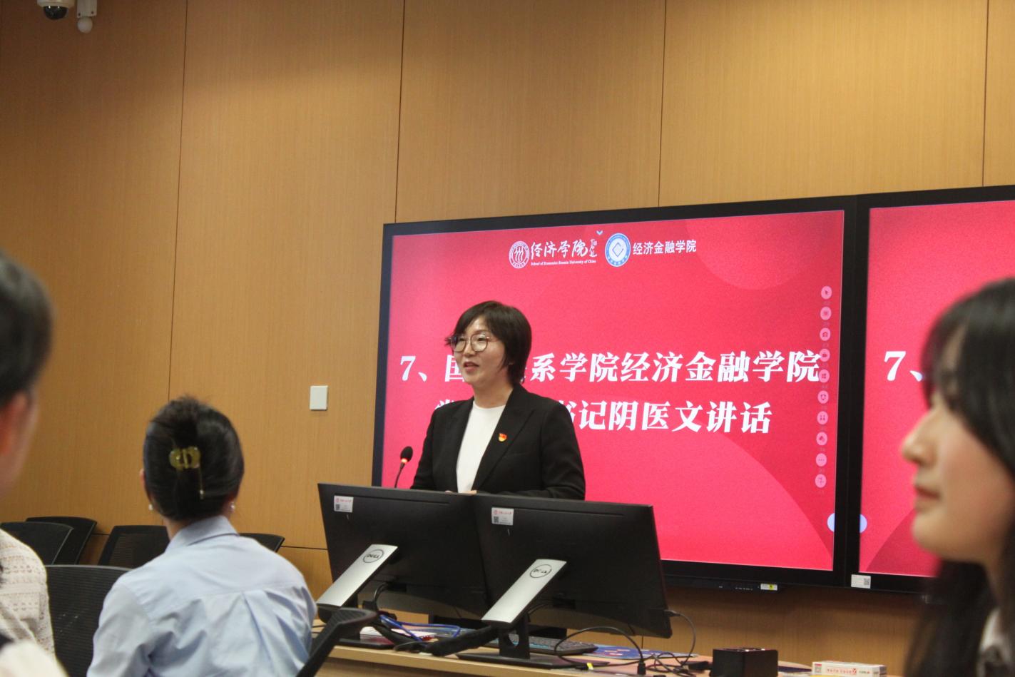活动伊始,中国人民大学经济学院党委副书记胡玲莉老师致开幕词,向同学们讲述了中国人民大学校史,也是人大激荡人心的红色奋斗史。作为新中国成立的第一批高校,中国人民大学始终奋斗在国家教育工作的一线,向国家输入了一批又一批的多领域优秀人才。