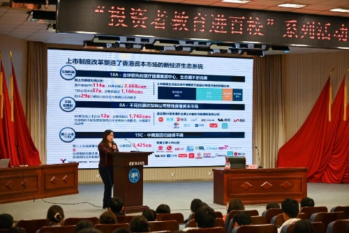活动正式开始后,管印女士首先向同学们介绍了香港证券市场的大体情况,后又深入浅出地向同学们介绍了港交所、上交所、深交所的互联互通机制及证券衍生品等与同学们所学专业紧密相关的知识。面对同学们的提问,管印女士对其进行了细致专业的解答,令同学们受益匪浅。