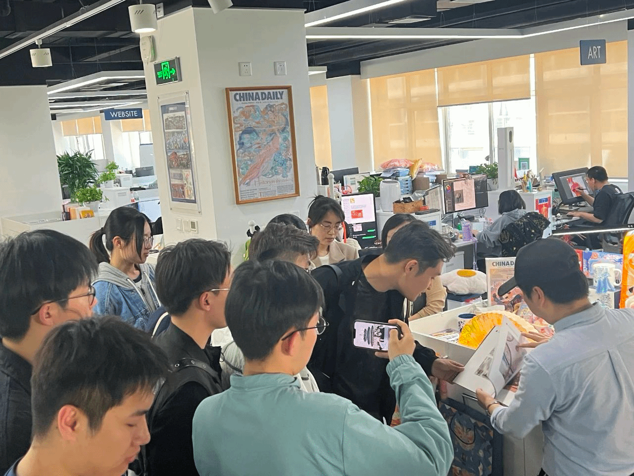 中国日报社是中央主要宣传文化单位之一,是中国走向世界、世界了解中国的重要窗口。作为国家英文日报,《中国日报》自1981年创刊以来,不断开拓进取,推进媒体融合发展与创新,拥有由传统媒体、移动媒体、社交媒体构成的全球化、分众化、多语种、全媒体传播体系,全媒体用户总数超过4.5亿,是国内外高端人士首选的中国英文媒体。文化与传播系教工、学生党支部党员代表跟随我校杰出校友参观了中国日报社,对报社的基本情况、历史成就、栏目版块以及文创产品有了全面直观的了解。