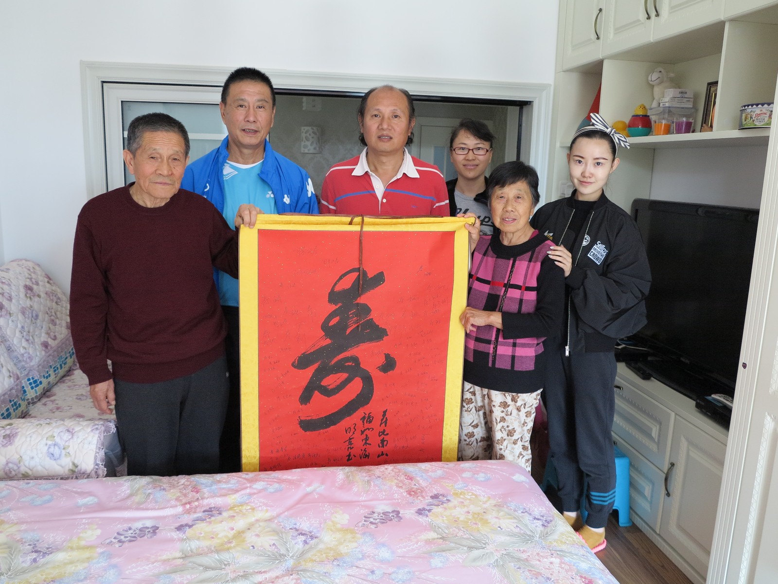 2015年 10月16日 为谢造立老师过80大寿,刘慧书记 陶坚院长等众多院领导和教工学生近200人在装裱好的寿字上签名添寿。