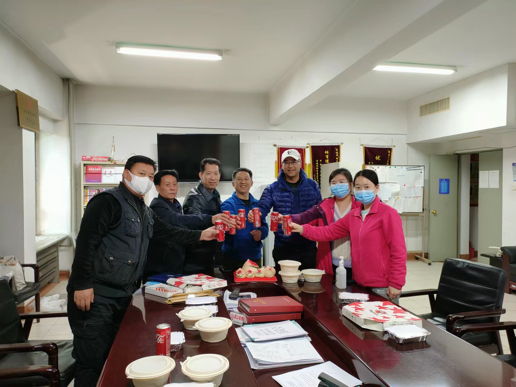为传递体美室对刚刚退休的李付顺同志的关怀和美好祝福,感谢李付顺同志多年来对国关体育的辛勤付出。体美室党支部为李付顺同志举行了退休欢送会,并为11月27日过生日的李师傅举办生日宴会。刘老师专门定制了寿桃。参加欢送生日会的人员有刘明亮老师、罗文老师、林荣花、顾鸿福、杨婷婷、李海峰、李兆梁等多名同事,因疫情原因其他人员没有参加的同事也用微信送来了祝福。