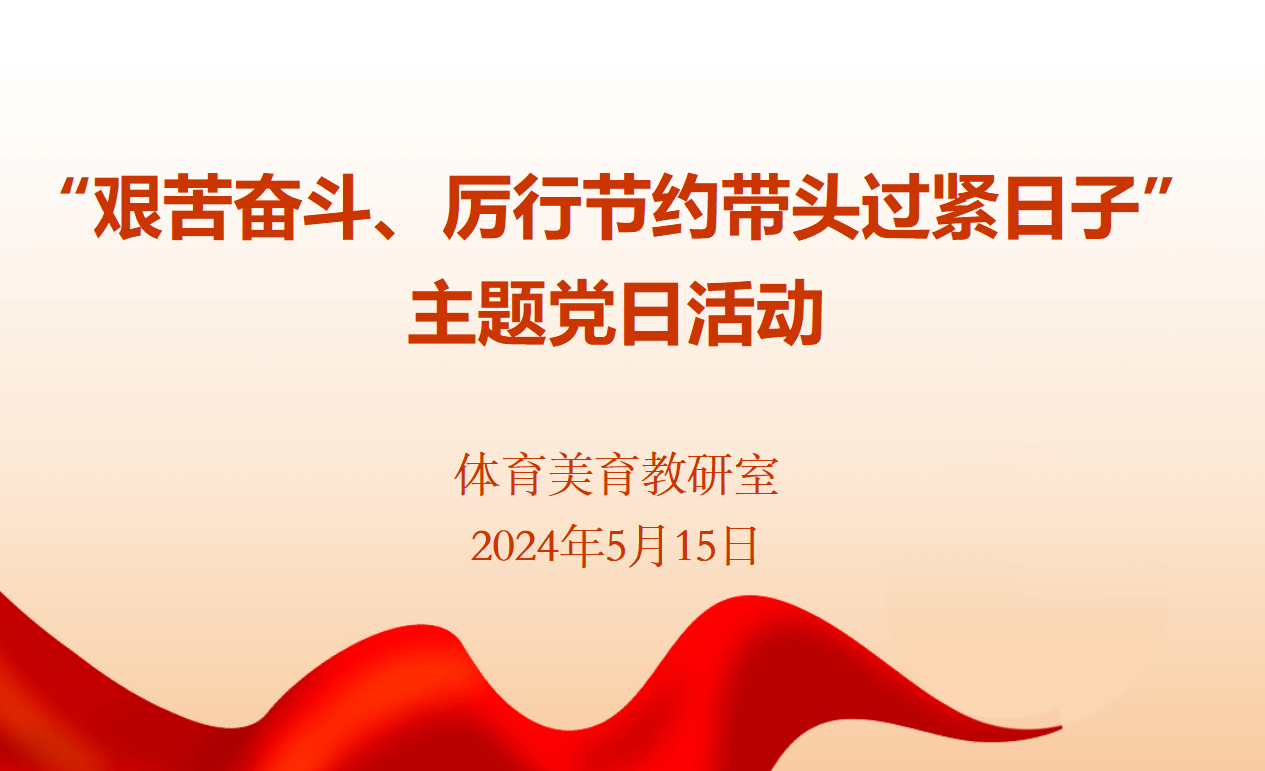 5月15日上午,体育美育教研室党支部积极响应校党委的号召,组织开展了“艰苦奋斗、勤俭节约、带头过紧日子”主题党日活动,旨在进一步贯彻落实习近平总书记关于推动中央和国家机关带头过紧日子的重要指示精神,引导党员同志们发扬艰苦奋斗、勤俭节约的优良传统,以实际行动践行共产党员的初心和使命。