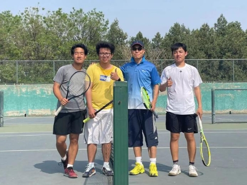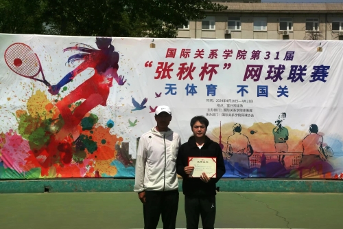 无体育,不国关;无网球,不国关。最美人间四月天,国关网球比赛欢。这次联赛赛出了国关人的体育素质,赛出了网球队员的技术水平,值得点赞!我作为网球运动的参与者,关注国关网球运动,经常到球场观赏训练。我作为老师与姚力祺同学搭档参加双打,虽没进前四,但增进了师生友谊。我深信体育的迁移价值(The Transfer Value of Athleties),相信同学们在网球运动中,不断培养配合协作精神,激发顽强拼搏的意志,并且迁移到读书考试之中。祝你们网球技术不断精妙、校园生活更加愉悦!
