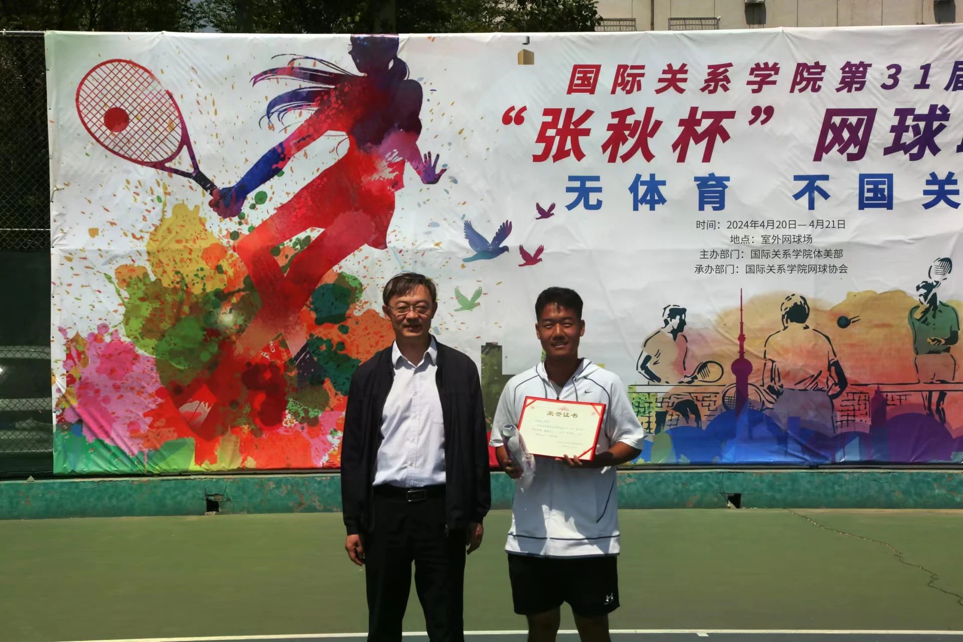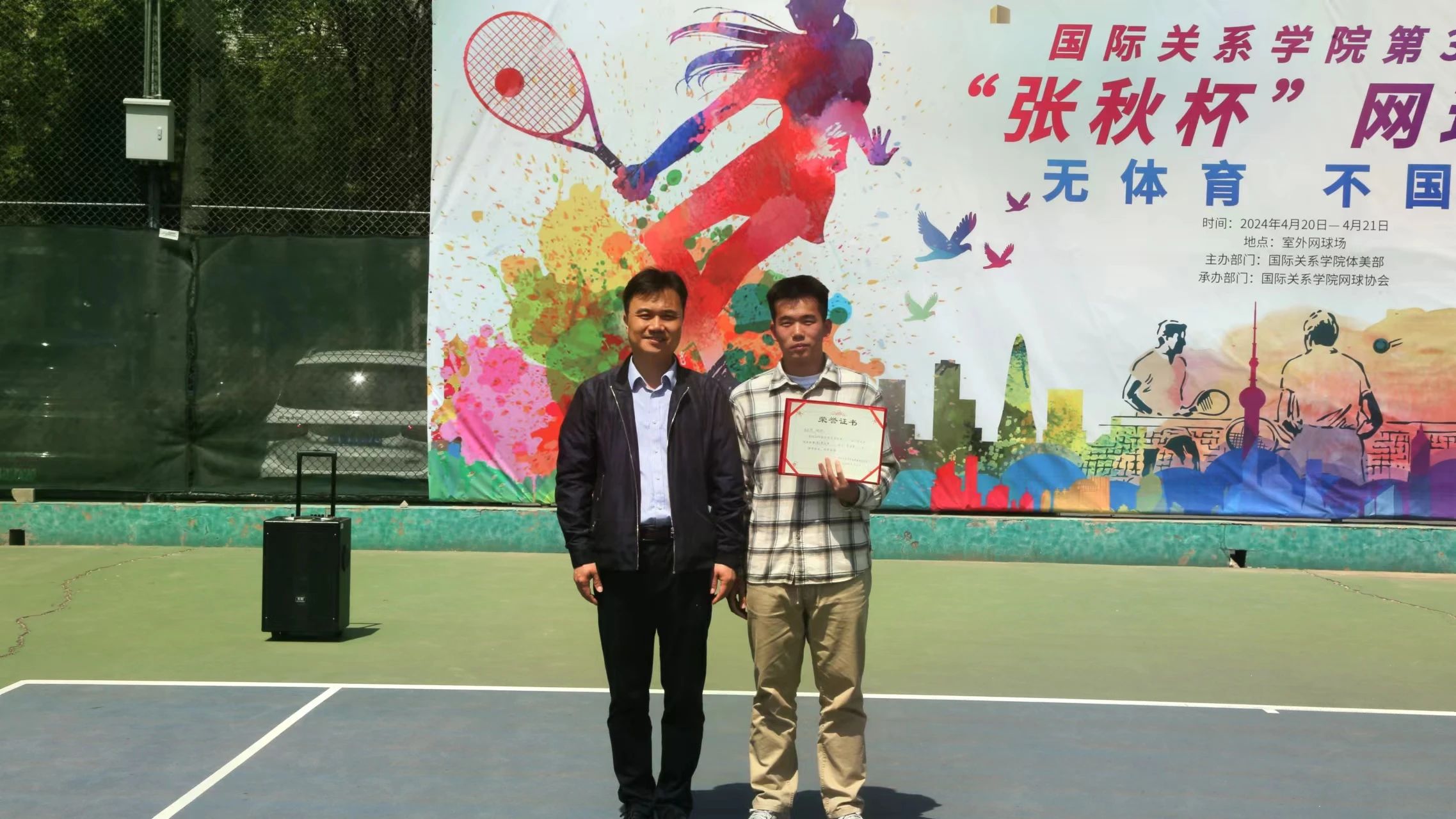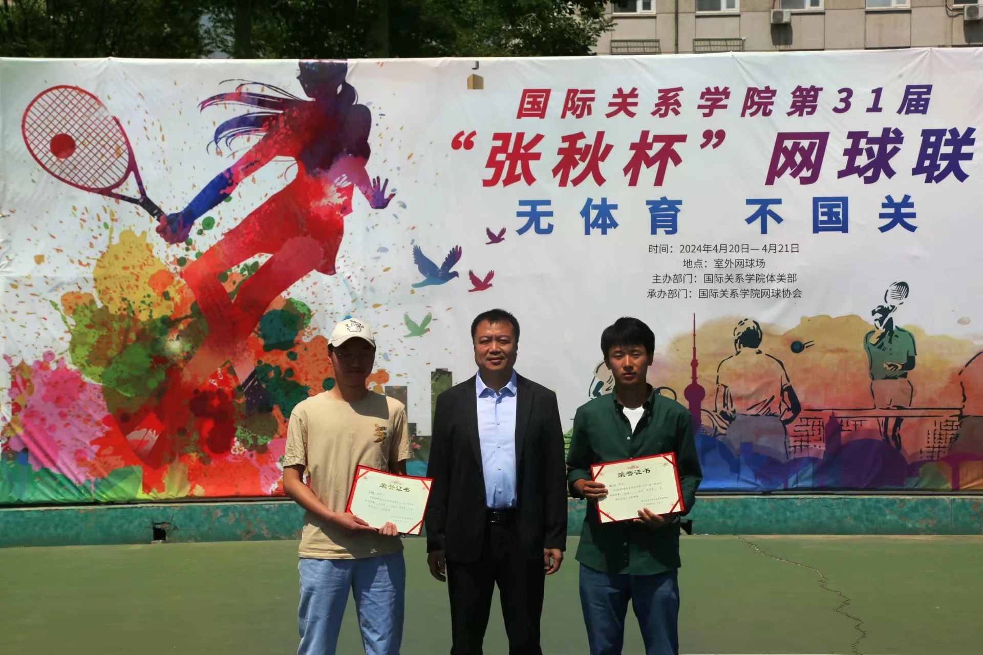 本次颁奖仪式由网球队教练罗文老师主持,国际关系学院党委副书记、纪委书记崔国贤,国际关系学院副院长许可,网络安全学院学院院长杨良斌,学生处处长吴启春,体育美育教研室主任宋翠翠,教师訾恒轩为本次获奖选手颁奖。
