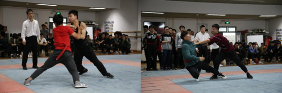 男子活步推手、定位推手两项比赛,经过预决赛一百多场紧张激烈的角逐,分别产生了6个级别的冠军。各级别冠军又重新抽签,进入到最后没有体重限定的王中王争夺战。最终,法律系杨国杰同学以高超的技巧和强大的实力技压群雄,摘得王中王桂冠。女子比赛也同样明星璀璨,光彩夺目。今年较以往的赛制有了突破性的改变,不仅级别由以前的三个重量级增加到了五个,而且还开设了女生王中王比赛。最终,来自国政系的陈芊溪力挫群芳,在王中王比赛中拔得头筹。