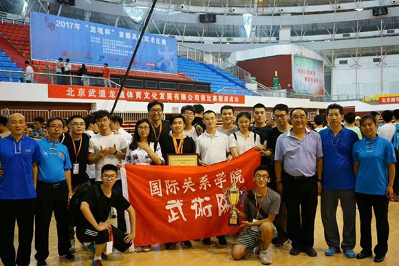 6月3日至4日,2017年“龙魂杯”首都高校武术比赛于在房山区良乡体育中心举行,来自首都33所高校的近400名中外大学生参加比赛,用实际行动体现了“爱我武术、爱我中华”的武术精神。我校武术队在刘明亮、许义林两位老师的带领下参赛,一举获得三个冠军、一个亚军、六个季军、一个第四名、七个第五名、一个第六名、一个第七名和一个第八名。团体赛方面,我校获推手团体总分冠军,取得了历史性突破。此外,我校分别获得团体总分第七名和功夫对抗团体总分第八名。这次高校比赛武术队队员们齐心协力、顽强拼搏,队伍整体表现优秀,充分展现出国关武术队强大的凝聚力和战斗力。