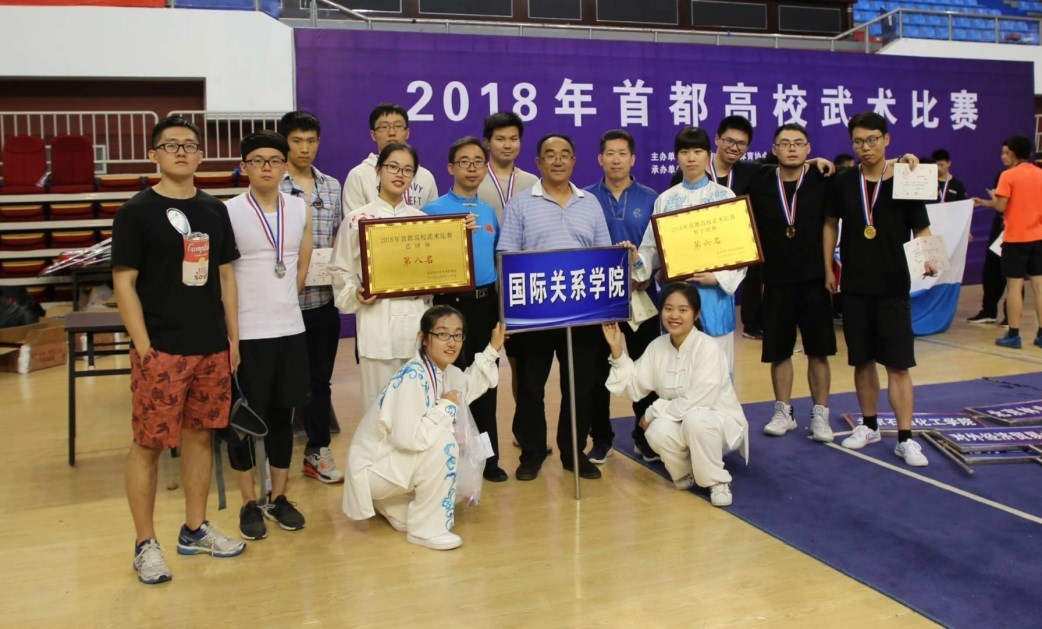 2018年首都高校武术比赛于5月26日至27日在房山区良乡体育中心举行,共有37所首都高校的445名中外大学生一展身手,用实际行动体现“爱我武术、爱我中华”。我校武术队在刘明亮、许义林两位老师的带领下参赛并再创佳绩,共获五个冠军、三个亚军、一个季军,六个前八名的好成绩。在团体方面,我校延续了去年的辉煌战绩,力压北京体育大学再次荣获推手团体总分冠军,并且夺冠数由去年的两个级别突破为四个级别。此外,我校分别获得男子团体总分第六名和团体总分第八名。这次高校比赛国关武术队队员们齐心协力、顽强拼搏,队伍整体表现优秀,在去年可喜战绩上再创辉煌,充分展现出国关武术队强大的凝聚力和战斗力。
