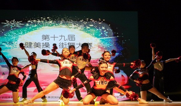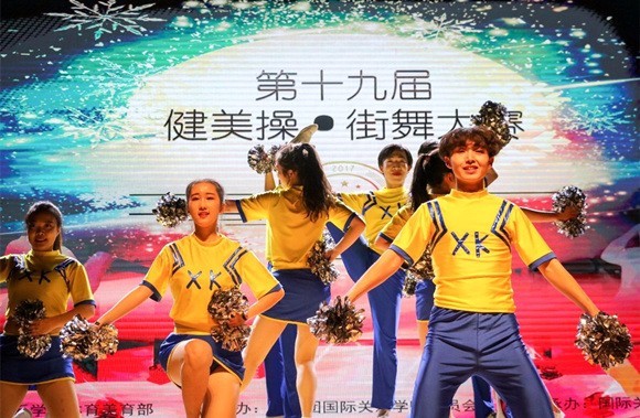 11月15日晚,我校十九届健美操·街舞大赛在学术交流中心礼堂举行。来自全校各院系部的共8支代表队的运动员们,在赛场上充分展示出自信昂扬的精神面貌,经激烈角逐,最终国际经济系荣获健美操一等奖,国际政治系、外语学院荣获二等奖;外语学院荣获街舞单项一等奖,国际经济系、国际政治系荣获二等奖;国际经济系斩获团体总分第一名。