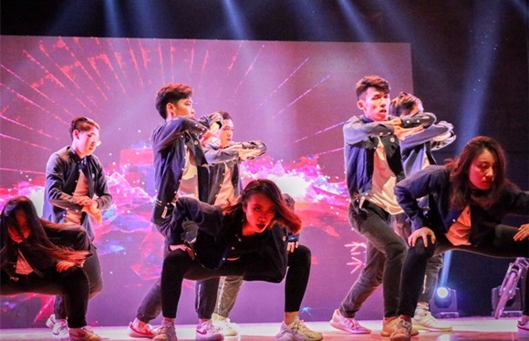 各院系教练队员带来的热力风采展示之后,正式比赛开始,各院系部按照赛前抽签顺序,健美操与街舞交叉上演。