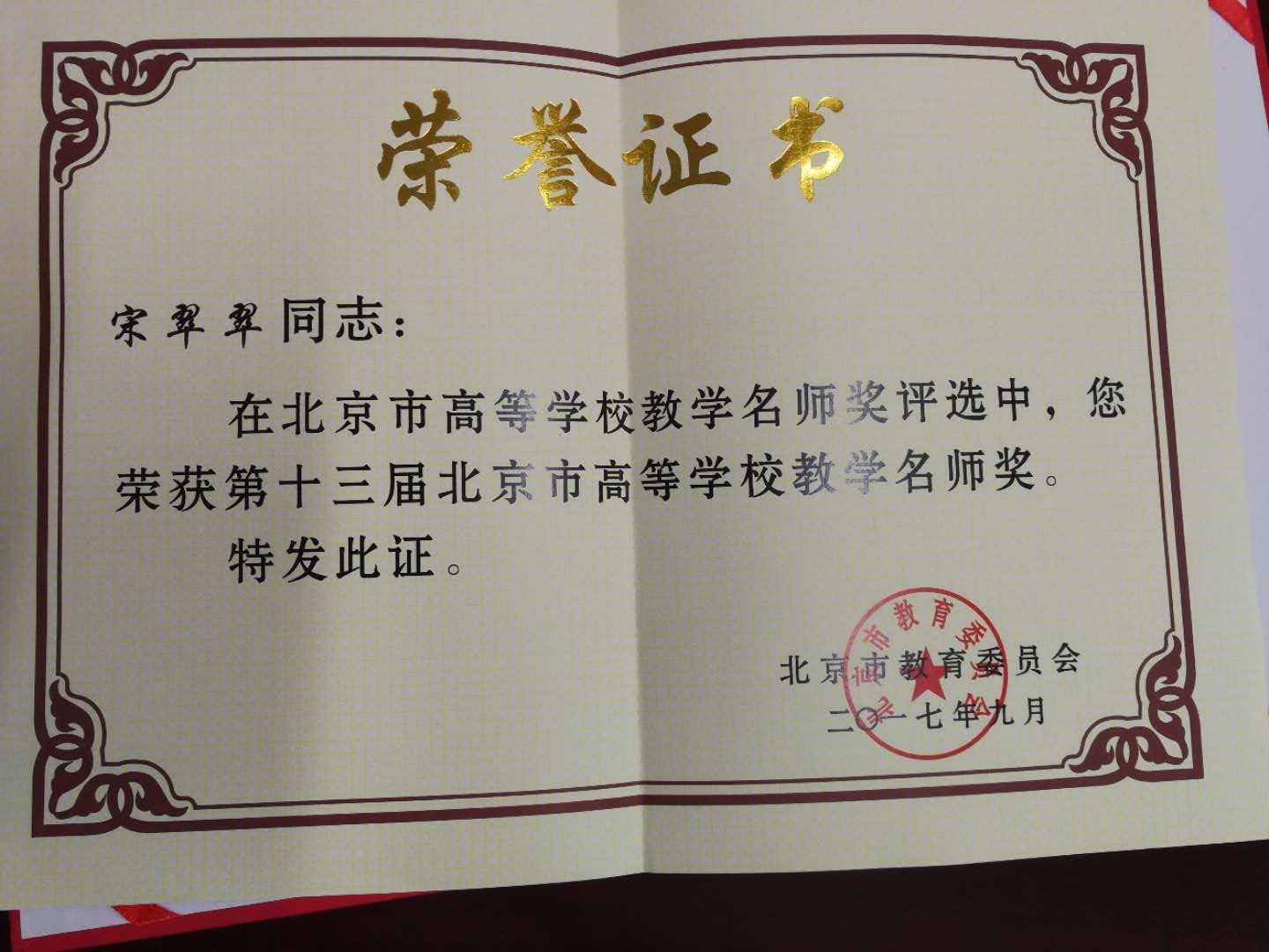 宋翠翠老师斩获第十三届北京市高等学校教学名师奖