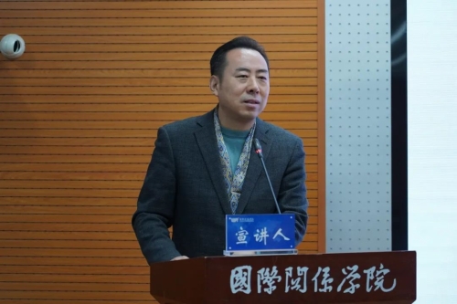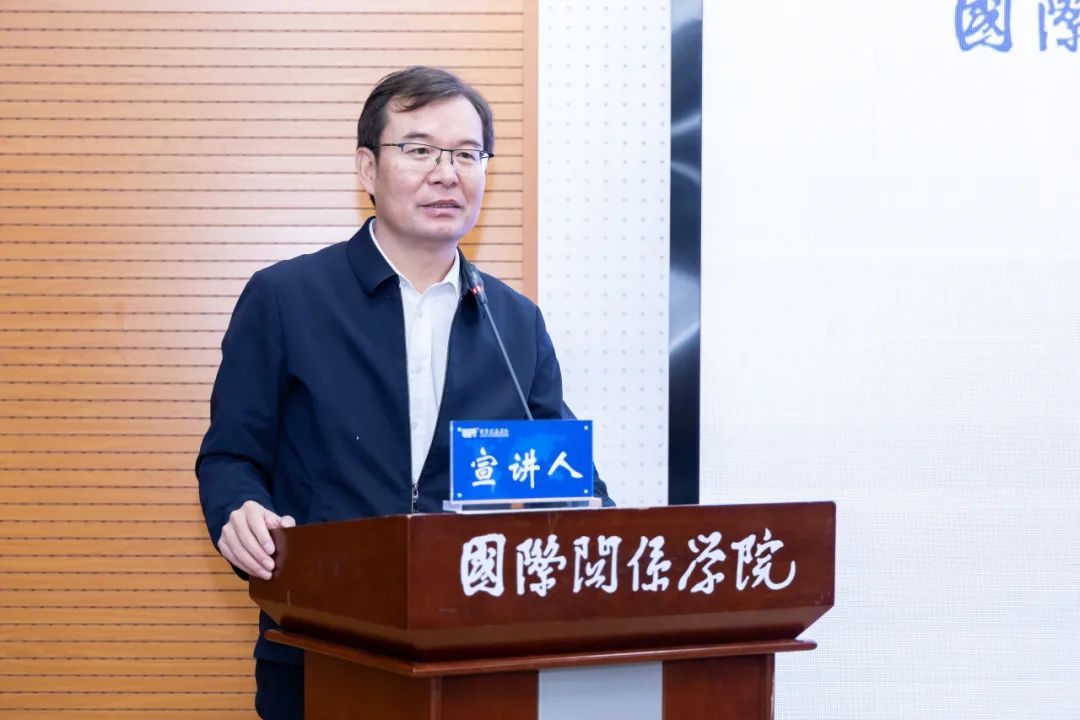 出席会议的国际关系学院代表有:宣教处处长孙圣英、副处长刘理鼎、公共管理系主任杨华峰、科研处副处长李梦欣、《国际关系学院研究报告》副主编苏娟、战略传播研究中心副主任钟厚涛、文化与传播系新闻实务教研室主任张中全、教工支部书记田赟宗、青年教师代表韩志华、罗曼、刘博睿、刘以宁、王睿路以及优秀研究生和本科生代表。