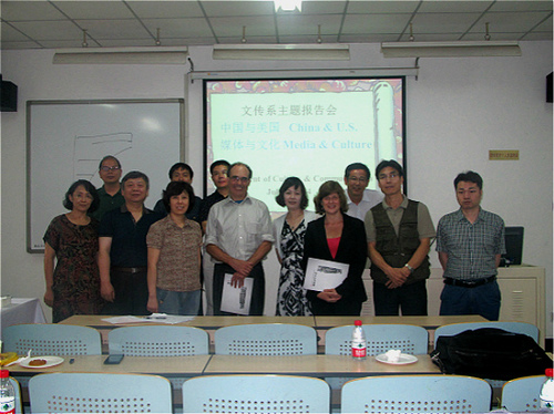 近日,文传系举办了“中国与美国:媒体与文化”主题研讨会。夏季小学期授课教师美国新墨西哥中心社区学院厄恩(Ehn)教授、纽约州立大学帕芬罗斯(Paffenroth)教授与全系任课教师进行了研讨。