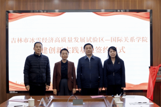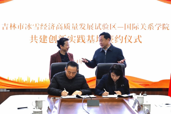 11月28日,吉林市冰雪经济高质量发展试验区与国际关系学院在我校学术交流中心第一会议室举行共建创新实践基地合作协议签约暨授牌仪式。吉林市冰雪经济高质量发展试验区党工委书记于跃洋、国际关系学院副院长毕雁英出席签约仪式,文化与传播系主任纪忠慧主持会议。