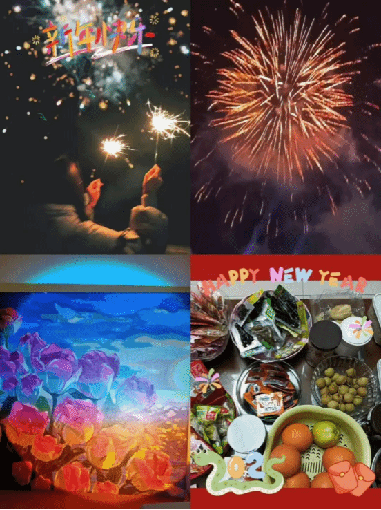 过年少不了的当然是年货啦,桌上摆满了琳琅满目的零食与水果,包装精美的小零食堆放在碗碟中,有散发着诱人香气的卤味、香脆的糕点等。一旁的水果新鲜饱满,圆润的龙眼、橙黄的橘子和翠绿的梨,仿佛在诉说着甜蜜与富足。新的一年,愿大家的生活像这满桌美食一样丰富多彩,甜蜜常伴。每一口滋味都是幸福的馈赠,每一份收获都如这新鲜的水果般丰硕。
