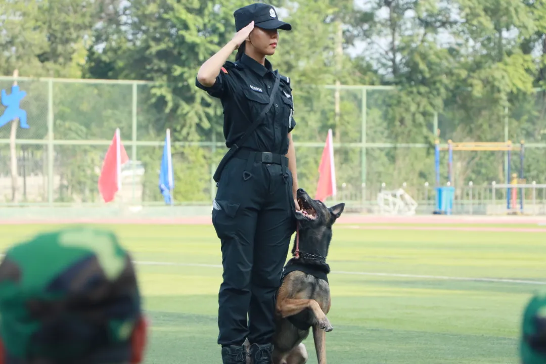 “神犬奇兵齐亮相,威风警犬保平安”在活动现场,我们有幸邀请到了功勋犬法海和蛋黄,为师生带来警犬训练科目演示。在训导员指令下,两只警犬不管是坐、卧、立、随行等基本功,嗅源技能科目训练,每一次任务都圆满完成,训练场上响起阵阵欢呼声。