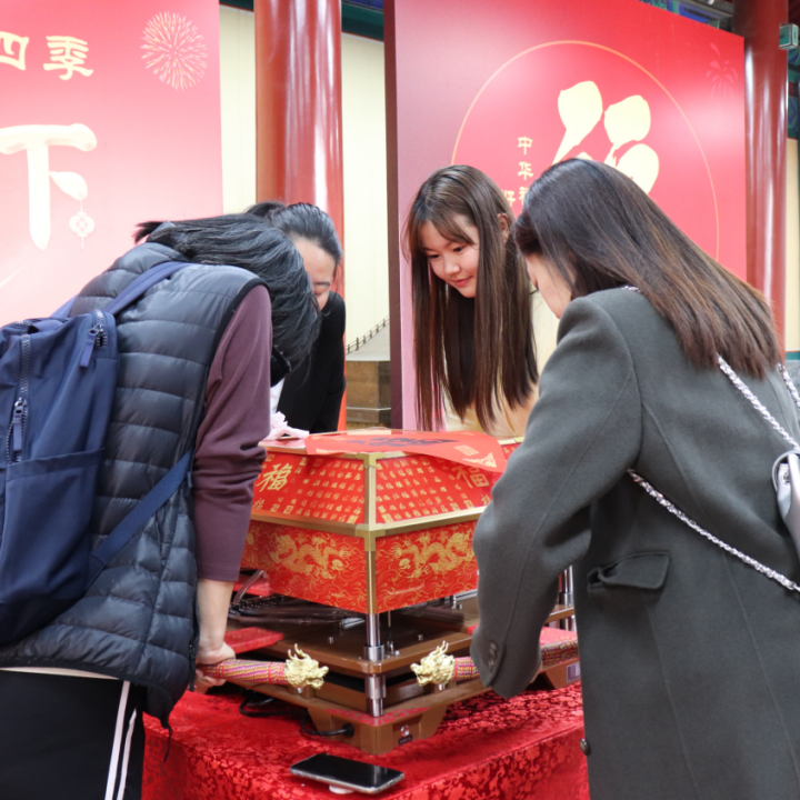 在参观结束时,大家领取了拓印的“福”字,这份祝福将伴随他们回到校园,传递中华传统文化的温暖和力量。这次参观活动不仅让师生们领略到中国古代农耕文明的伟大成就,感受到古代先民对土地和农业的崇敬与感恩之情,也让师生们感受到了中国古代建筑的独特魅力和文化内涵,加深了对传统文化的认识和理解。
