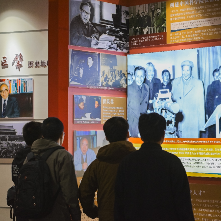 接着,师生们参观了《永恒的瞬间》中国科学家博物馆预展。展览从“一脉相承”、“一生一事”、“一诺千金”、“一心报国”几个板块,以丰富的史料展示了陈能宽、王大珩、黄旭华等诸多科学家的报国人生。