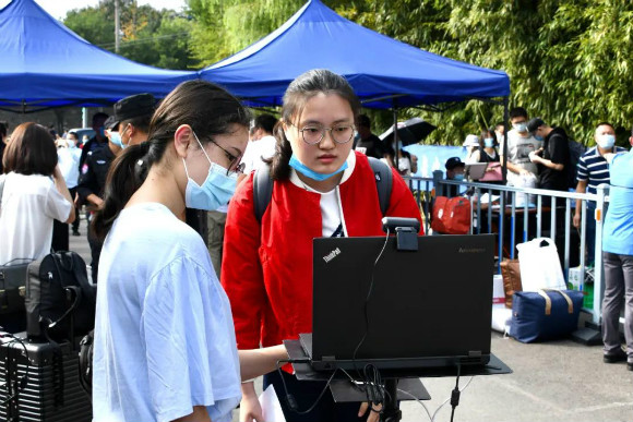 受疫情影响,今年新生家长无法进入校园陪同办理入学手续。为配合疫情防控工作以及使新生更快融入大学生活,我院各系特地安排志愿者一对一服务新生。新生到学院门口接受体温检测,核酸证明及健康“绿码”检查。随后,各系志愿者全程陪同新生办理报到手续、搬运行李、入住寝室。同时,志愿者们还向新生介绍了国关校园、讲述了国关故事,使他们能更好地了解国关文化。