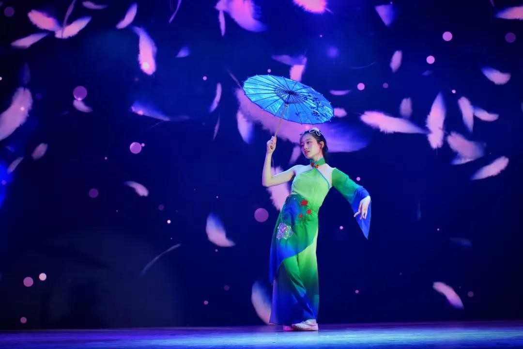 青春是一首动听的旋律,由冯程程同学为大家带来《羽化灵蛇》,一人一伞,灵动的舞姿,随着音乐旋律和节奏的变化、意境的变化,从轻柔优雅,到紧张忐忑,最后再复舒缓;从初生经历低谷,再至重生蜕变,带给观众回味无穷的韵律和对人生与青春深刻的思考。
