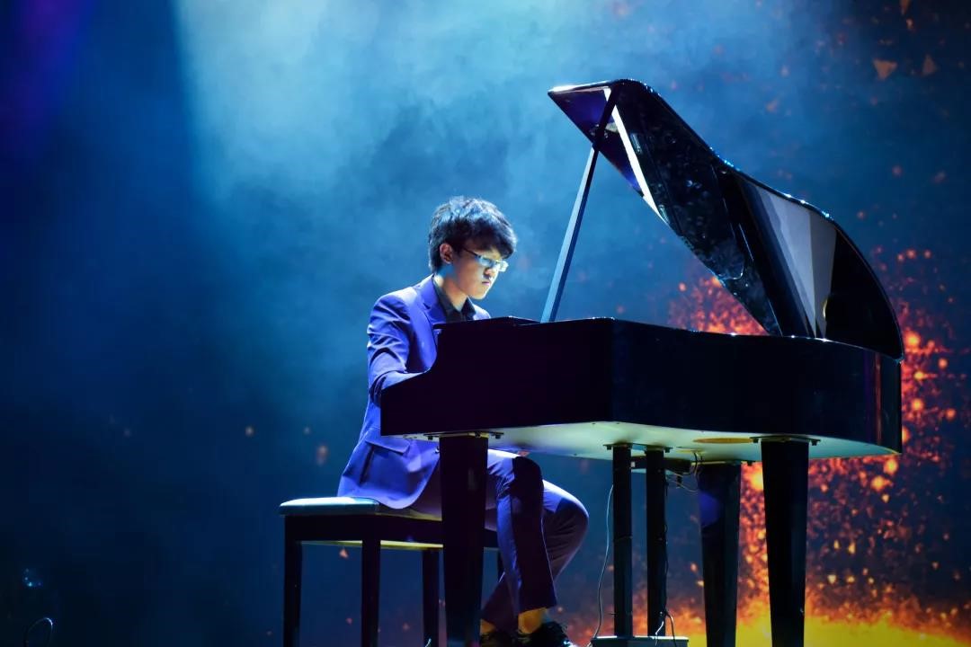 灿烂光辉的背景,满场的聚光灯下,清脆悦耳的钢琴声,短促有力的音符声,轻快的旋律节奏,在演奏者富有激情的弹奏中充斥全场的是由李昂同学为大家呈现的钢琴独奏——《钟》。