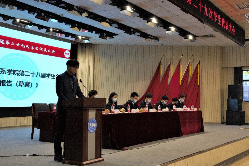 大会选举外语学院沈绎州、国际政治系陈壹和经济金融学院莫亚锟三位同学为第二十九届学生会主席团成员,选举文化与传播系王紫涵、网络空间安全学院李岱霖、法学院齐宏铖、外语学院姜景涵、外语学院沈绎州和国际政治系陈壹6位同学为第二十九次学生代表大会常任代表。