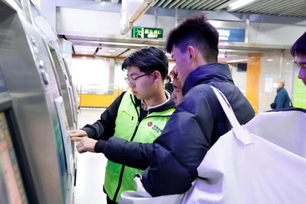 组织志愿者参与北宫门地铁站志愿引导服务,为乘客解决出站以及前往三山五园路线问题,维护“文明乘车,合理出行”地铁站秩序,展现了国关学子的良好精神风貌。