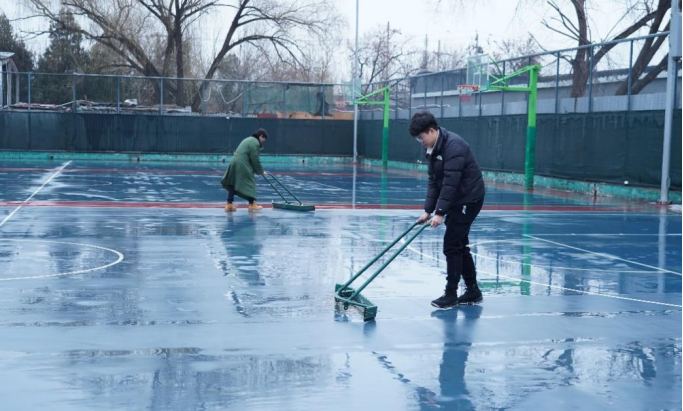 国家安全学院文化与传播系团总支组织师生对积水的篮球场进行了清理,使得篮球场能够尽快投入使用,为全校师生的体育教学、身体锻炼提供了保障。