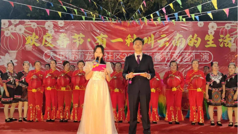 国际政治系彭祎同学在春节前夕积极参与村内文化惠民志愿服务工作,担任村内春节联欢晚会主持人。