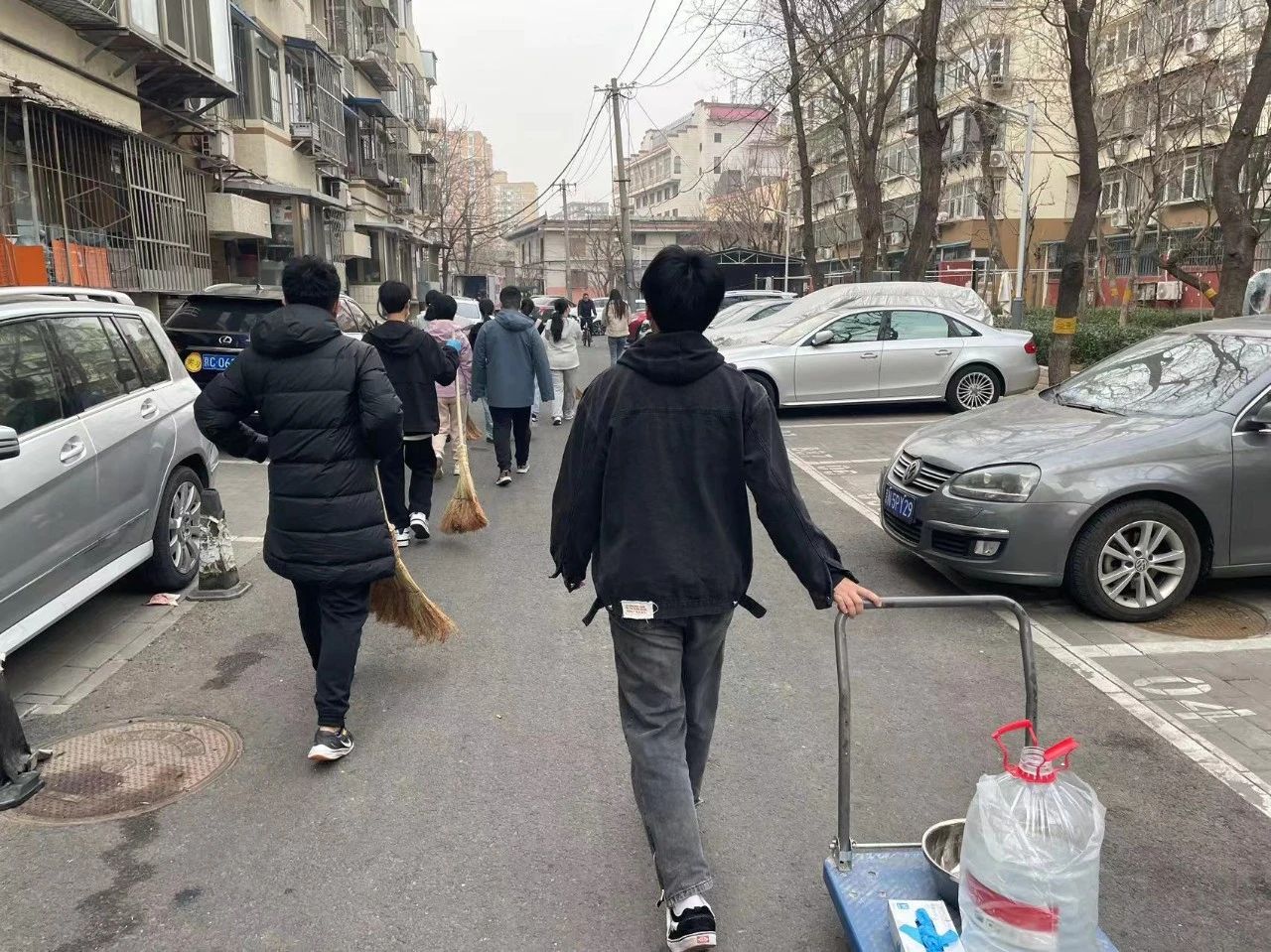与万泉庄南社区联合开展“学雷锋”社区美化活动。在社区工作人员的带领下,同学们认真打扫车棚,用心排放自行车,共同使社区变得更整洁。通过志愿活动学思践悟雷锋精神的永恒价值,落实我为大家办实事的工作理念,展现新时代国关人的向上风貌。