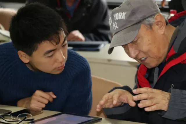 2015年11月7日上午,赵博春和苏乃正带领20名国关志愿者本学期第三次来到青龙桥社区服务中心,一如往常地为该社区19位志愿者提供科级助老的志愿服务。