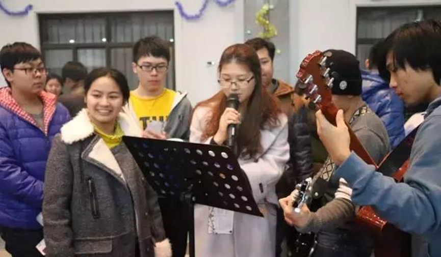 “你点歌,我伴奏”是吉他社推出的活动。同学们排起长队等待点歌,吉他社社员耐心地为每一名参与者奉上倾情弹奏。这是属于大家的个人小型演唱会,可以体验到与卡拉OK完全不同的感觉。同学们伴随吉他的伴奏,在“红毯”的中央一展歌喉。