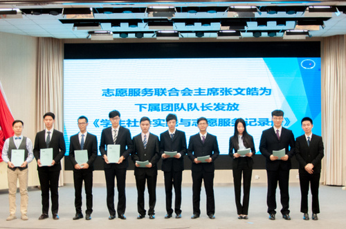 在大会的最后,志联办公室主任蔡斯雨发布了志愿案例征集计划,即把同学们的志愿工作经历或在志愿中遇到的困难和解决办法汇总成册,形成具有我校特色的具有实战指导性的志愿服务培训手册。志联主席张文皓向志联办公室主任蔡斯雨及各团队队长发放了学生社会实践与志愿服务记录手册,号召同学们用经历填满手册,加入到志愿服务队伍当中。