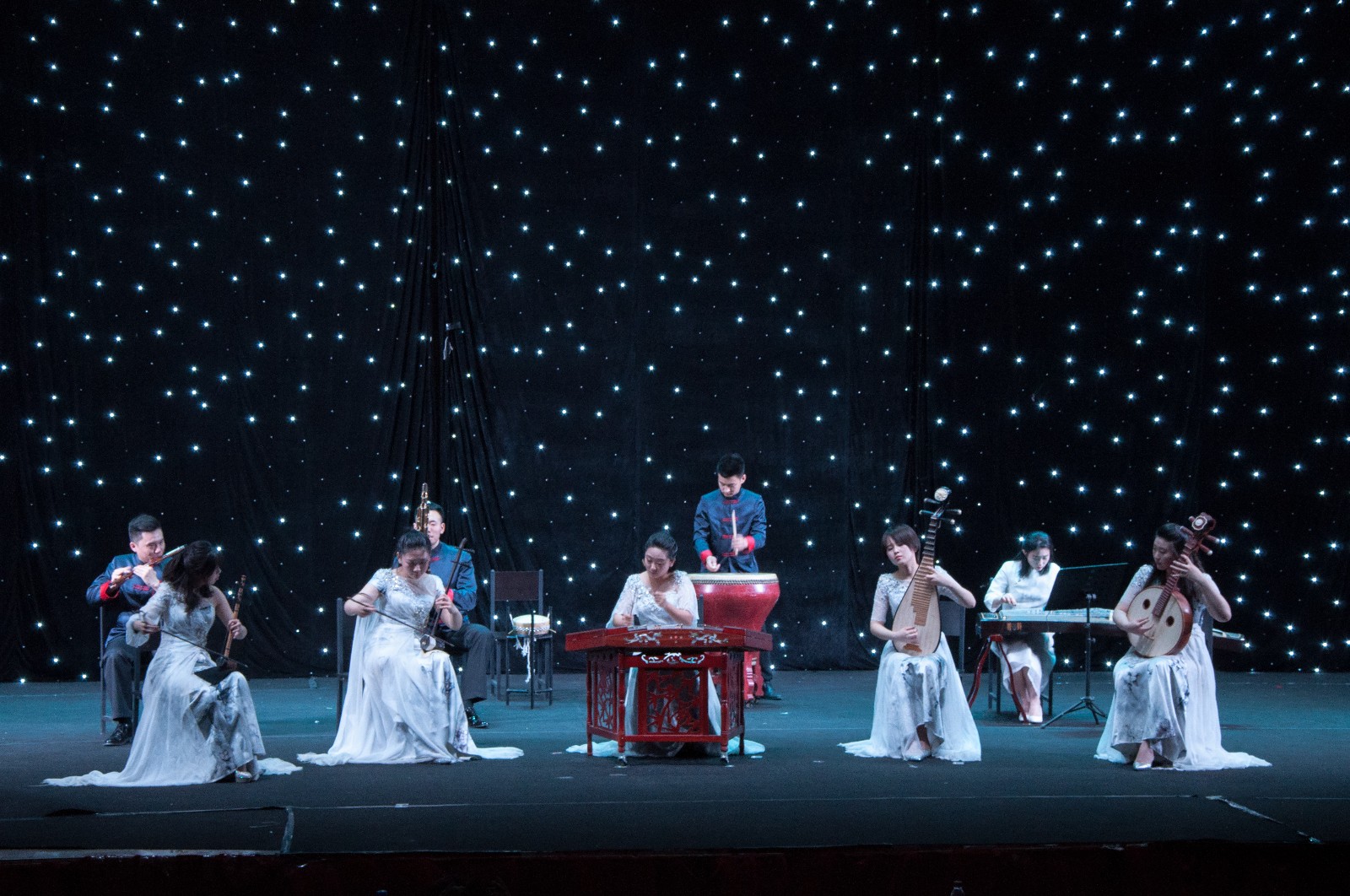 4月28日19点,行乐民族室内乐团国关专场音乐会在我校礼堂举办。星光熠熠的帷幕下,是轻拢慢捻的丝弦,是敬迎嘉宾的瑟笙,是激撼塞外的胡琴。今夜的礼堂,是民族音乐的欢然盛宴。