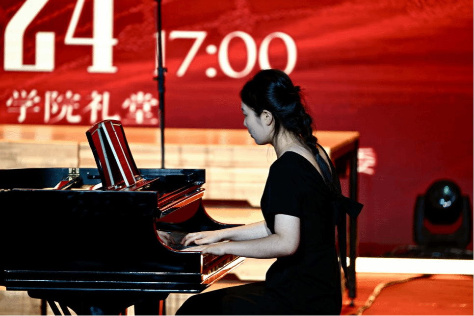 音乐会以中国音乐学院2022级钢琴系本科生王子涵演奏的《叙事曲》拉开序幕。作品以深沉的旋律和丰富的情感变化,讲述了一段感人至深的革命往事。演奏者通过娴熟的技巧和细腻的情感处理,将音乐的叙事性与戏剧性完美融合,使在场师生仿佛重回那段峥嵘岁月。