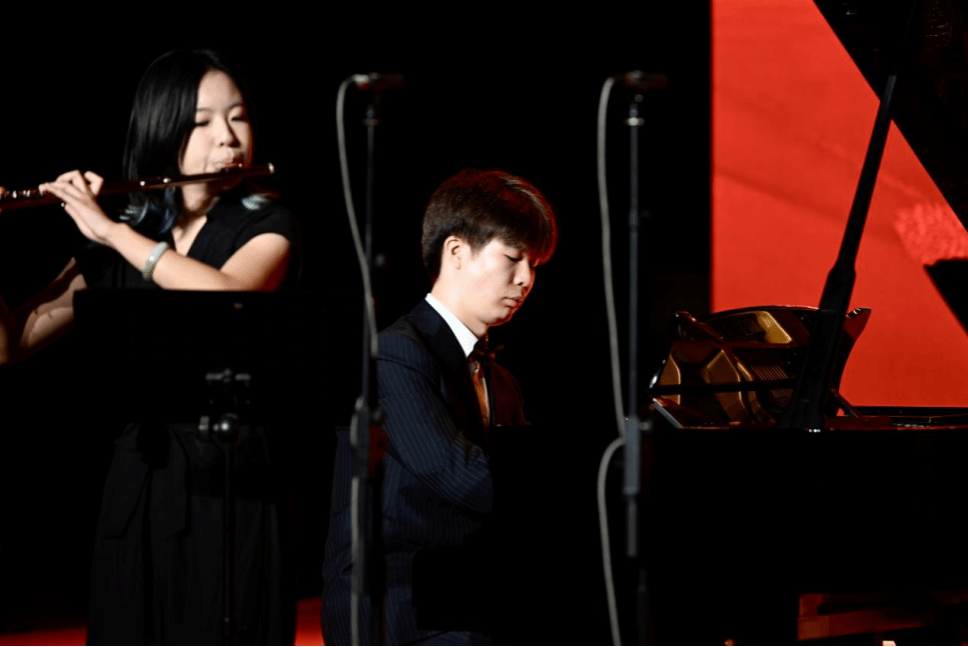 中国音乐学院2024级钢琴系本科生赵晓璐与2023级钢琴系本科生柴诺伊共同演绎了《我的祖国》。这首经典作品经两位年轻演奏者的诠释焕发了新的活力。曲目旋律优美动人,演奏者情感真挚深厚,以音乐语言描绘出祖国壮美山河与人民对和平家园的深情眷恋,引发全场强烈共鸣。
