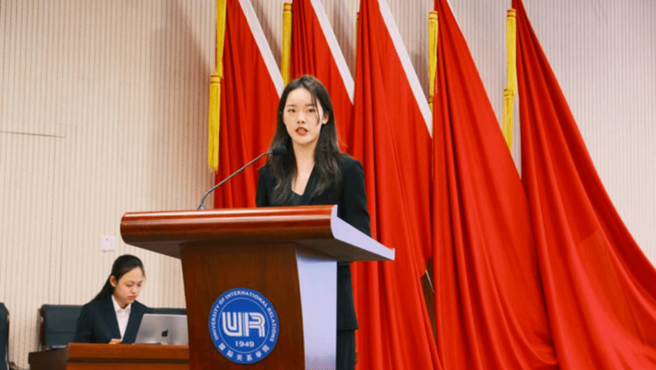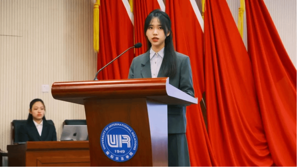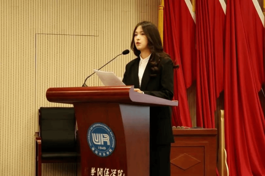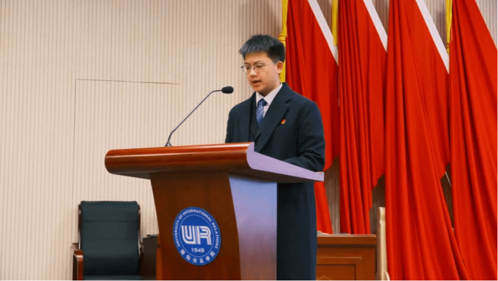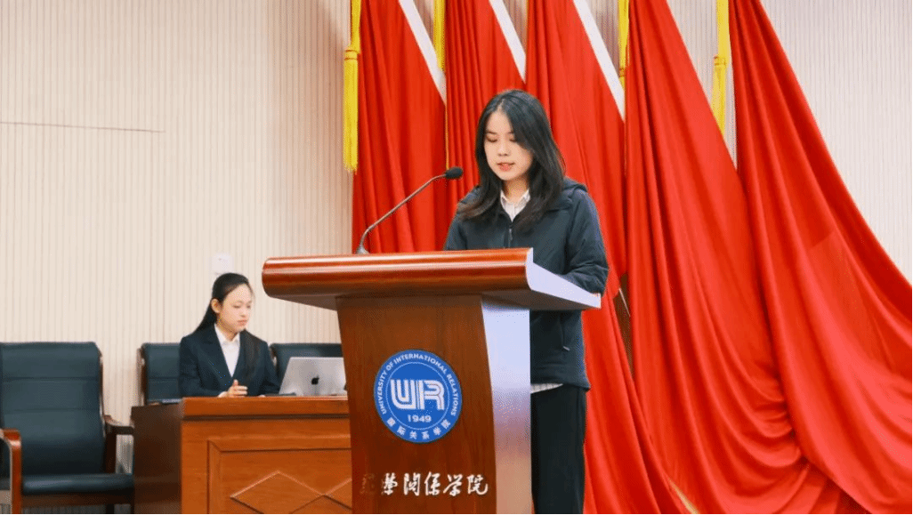 国际关系学院院团委段雅婕老师上台致辞。段雅婕老师指出,国际关系学院学生会功能型团支部自成立起,始终担负着联系青年、引导青年、服务青年、凝聚青年的重要职责。她对过去一年中国际关系学院学生会功能型团支部的工作给予了高度肯定,并对新一届学生会功能型团支部委员会成员提出了三点期望:第一,强调责任意识,服务广大同学;第二,要勇于创新实践,探索支部工作新路径;第三,要传承优良传统,展现国关学子风采。